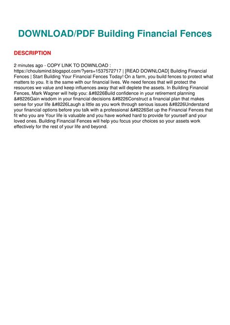 Title: - Building Financial Fences