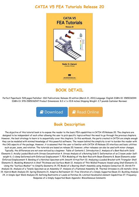 Uncover the right location to read - While you will discover individuals who can make amends for some looking through even if travelling in a loud bus, If you're the kind that is well distracted, then you should find yourself a superb location to do your reading through from. Ordinarily, the location must be peaceful and cozy therefore you have the ability to chill out and think about the Catia V5 Fea Tutorials Release e book that you will be reading through. You should also find yourself a reading position that may be most cozy; lying with a sofa, prop your toes, whatsoever functions for you.